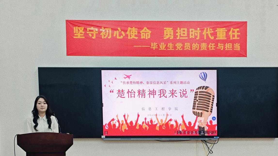 为深挖楚怡精神的时代内涵,培养担当民族复兴大任的数智工匠,信息工程学院于2025年10月28日至11月18日开展了第一届“传承楚怡精神,彰显信息风采”系列主题活动。本次活动设置“楚怡精神我来说”“楚怡精神云剧场”“楚怡青年超有范”三大赛项,吸引了学院学生广泛参与。