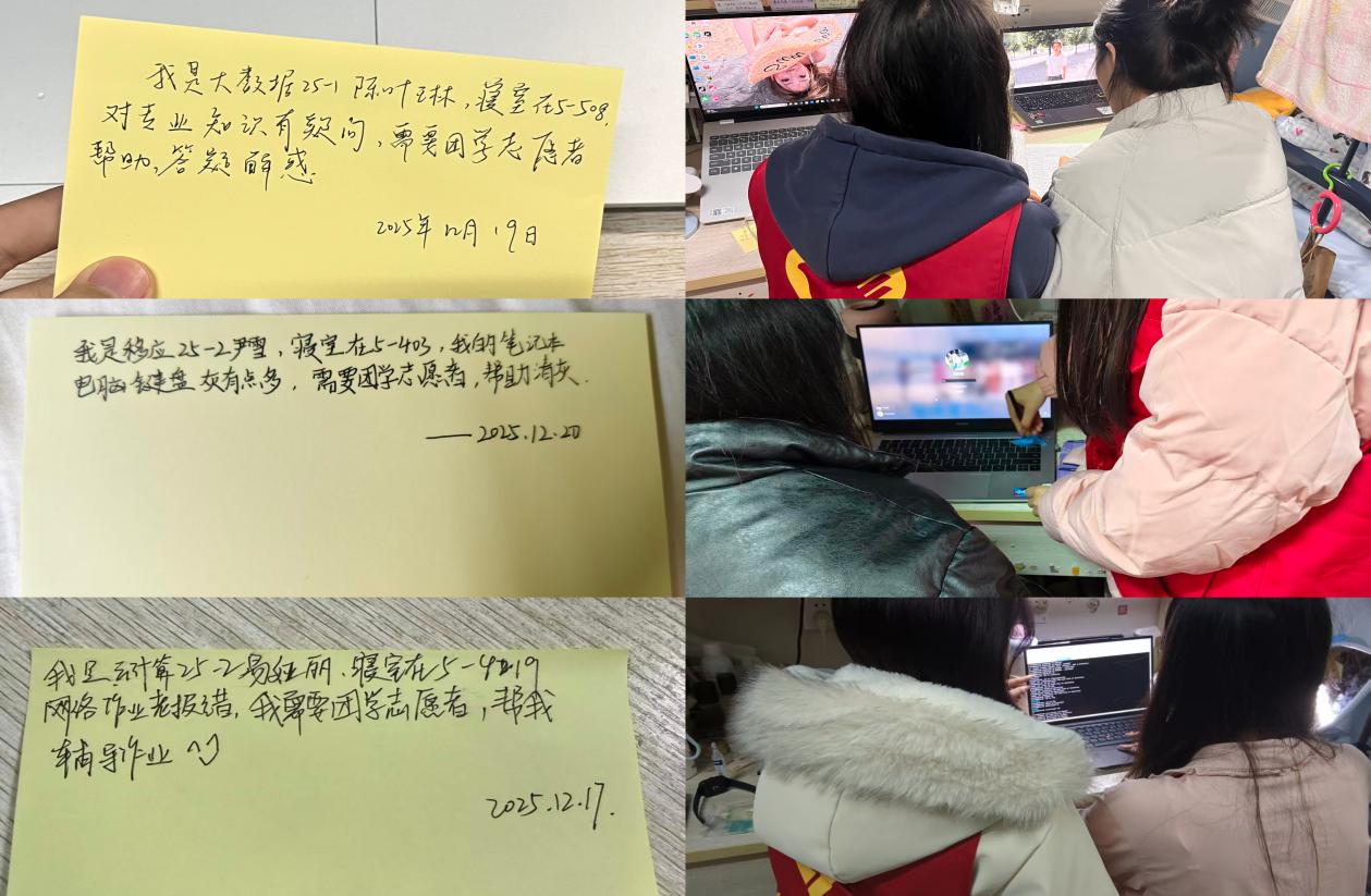 为响应校园志愿服务常态化号召,深化学生社区互助氛围建设,12月15日至30日,信息工程学院团总支学生会在学生宿舍一站式社区开展“志愿服务接单”活动,以“按需对接、精准服务”模式为同学们排忧解难,让互助暖流浸润校园。