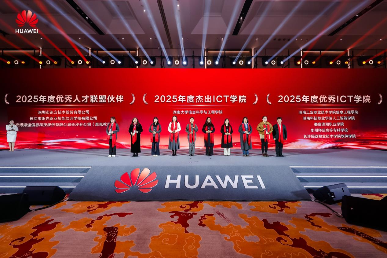 2026年2月28日,在2025年度华为湖南合作伙伴答谢会暨颁奖典礼上,我院荣膺2025年度华为“优秀ICT学院”称号。