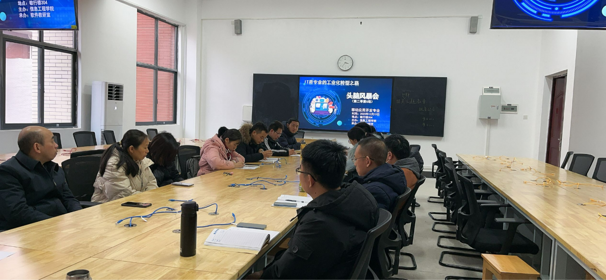12月19日下午,信息工程学院在敏行楼10-304举行了“IT专业的工业化转型之路”系列头脑风暴会第二季第6场之移动应用开发专业为主题的研讨会。信息工程学院党总支书记廖佑莲、副院长周朕、副院长李俊成、教务办主任徐运标、院学术委员会成员应邀出席研讨活动,软件教研室全体教师、移动应用开发专业辅导员(班主任)、各教研室专业课教师代表参加了教研活动。会议由软件技术教研室主任伍添秀主持。