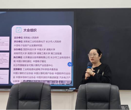 副院长杨丽莎就2024年世界计算大会的主题报告会和工业互联网创新主题研讨会相关内容进行了分享。分享内容包含了最新的算力服务云化技术、算力网新型网络技术体系、行业大模型语料需求等前沿技术动态,同时阐述了工业互联网的发展趋势和特征。此外,杨丽莎对学院的专业定位及人才培养提出了思考和建议。