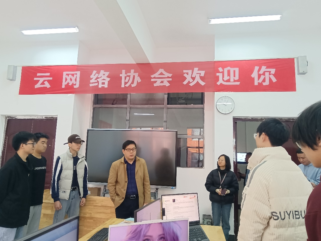王世峰在软件协会和云网络协会备赛室中,与指导老师及备赛选手深入交谈,了解同学们关于竞赛的学习心得和培训老师指导竞赛的方法。云计算和Python两个赛道是学院的优势赛项,多次在国赛和省赛中获得了优异成绩,在上一届的技能竞赛中都获得了一等奖第一名的好成绩。本次组建的团队也是刻苦自励,队员不分昼夜进行集训,坚守保持本赛项在上届比赛中已取得的好成绩。