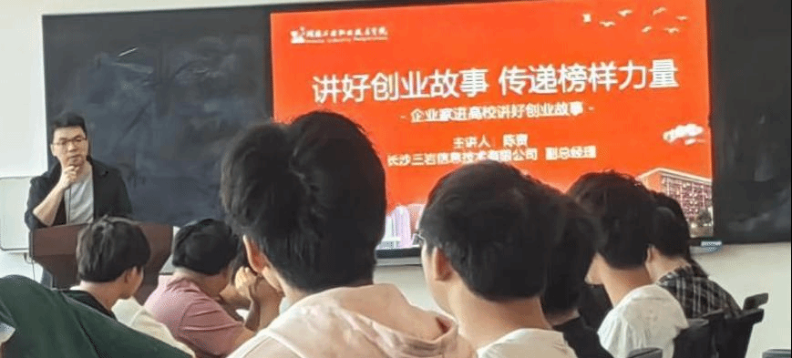 本次讲座特邀长沙三岩信息技术有限公司副总经理陈资为学生分享了自身的创业经历,学院120多名学生参加。