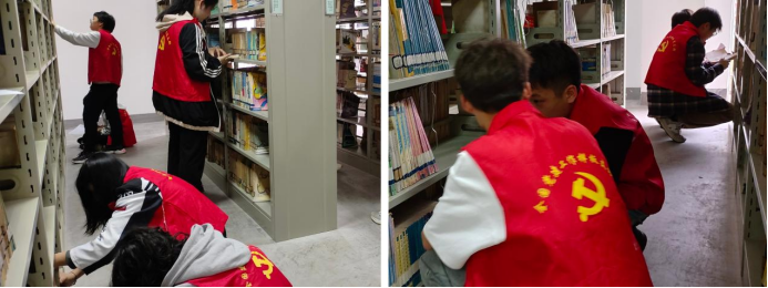 4月11日下午,信息工程学院学生自律督察委员会的同学们来到图书馆,协助图书馆老师开展了整理图书志愿服务活动。