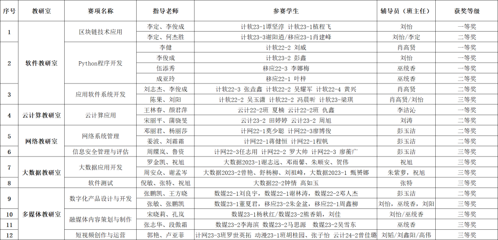 信息工程学院2026年度“楚怡杯”湖南省职业院校技能竞赛省赛获奖情况
