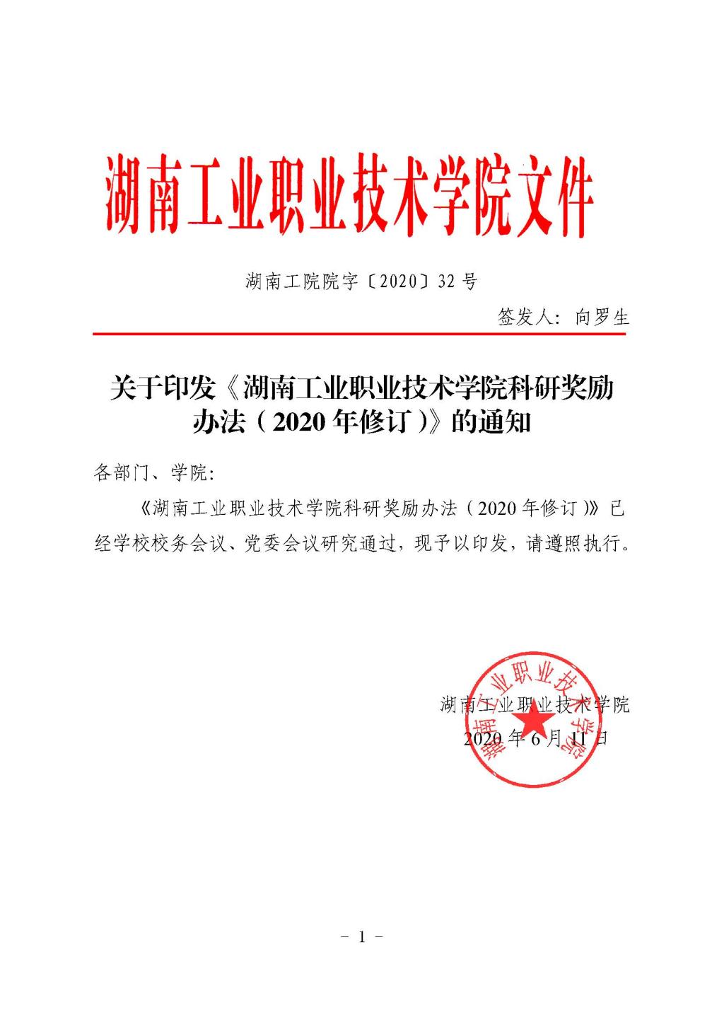 院字[2020]32号关于印发《电子pg游戏平台下载科研奖励办法(2020年修订)》的通知