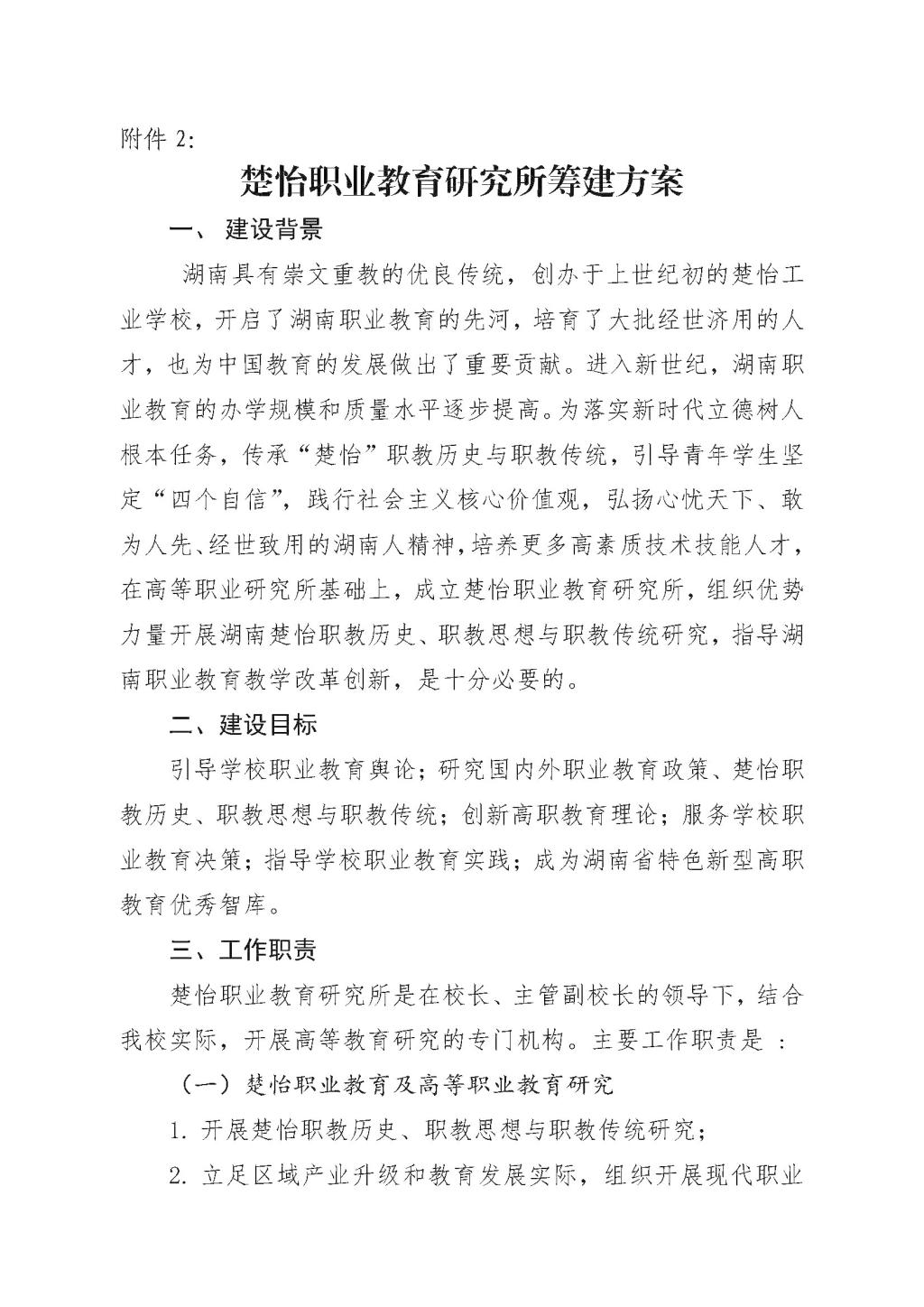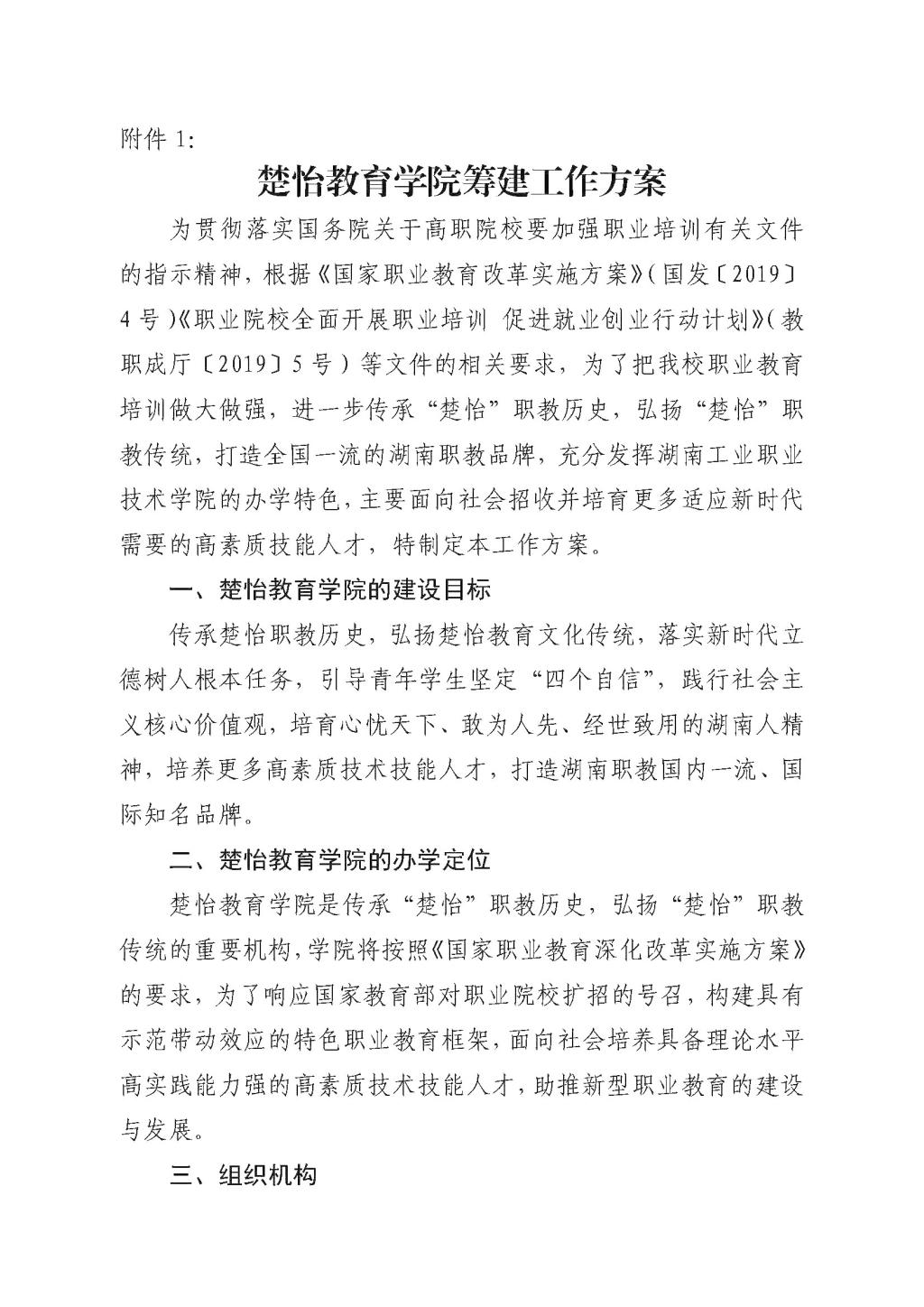 关于印发《楚怡职教品牌项目筹建方案》的通知