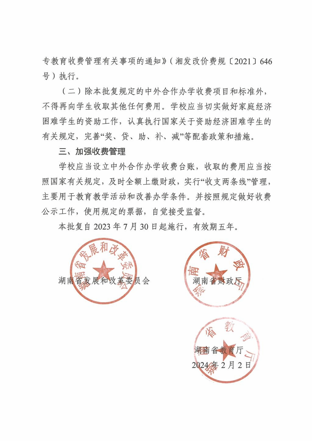 关于湖南师范大学等高校中外合作办学项目收费标准的批复(湘发改价费规〔2024〕88号).pdf