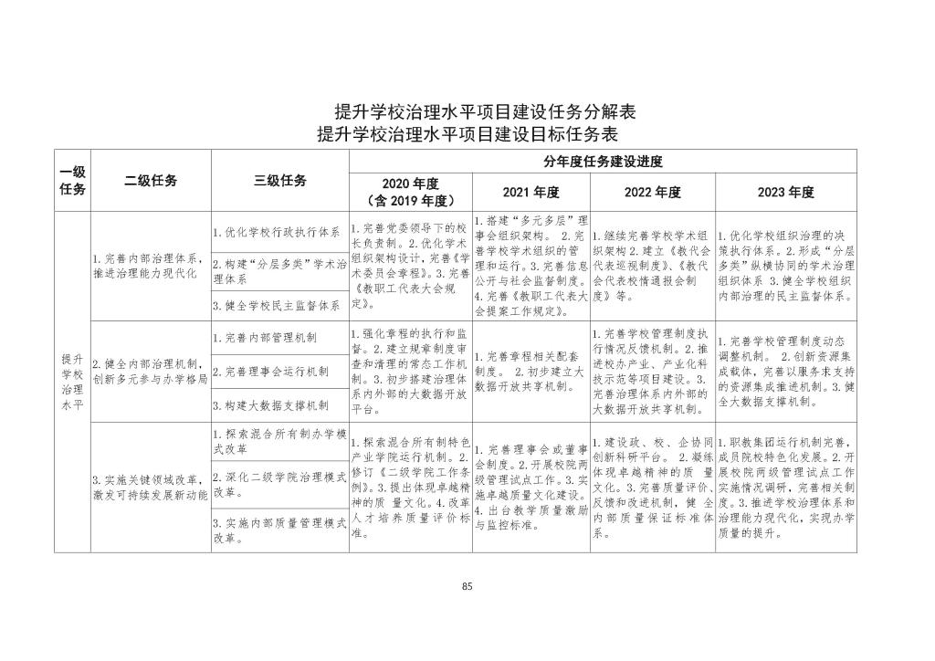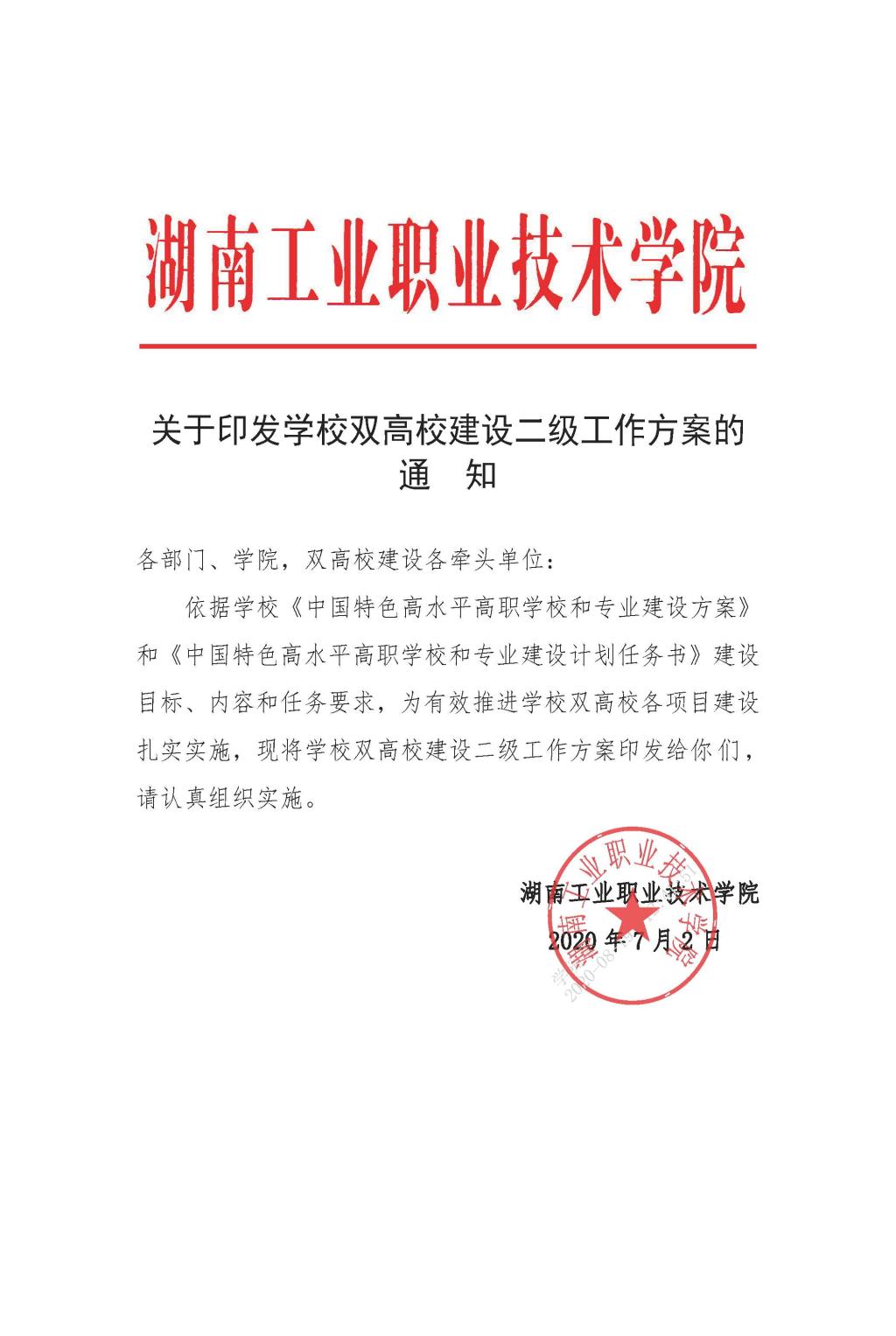 关于印发学校双高校建设二级工作方案的通知