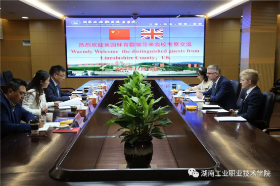 当天上午,中共湖南省委外事工作委员会办公室、湖南省教育厅、英国林肯郡议会在长沙举行“湖南省-林肯郡教育合作恳谈会”,共商教育合作,我校副校长董建国出席会议并发言。会上,英国林肯郡高校与我省高校介绍了双方学校情况,董建国重点介绍了我校专业群建设、国际交流、对外合作办学、海外人才培养培训等情况。英国林肯学院副校长Tom Dannatt表示,与工业职院有着精准对接的优势专业及课程,有着共同的国际合作理念,期待与我校在教师培训、课程开发等方面开展务实合作,结出丰硕成果。