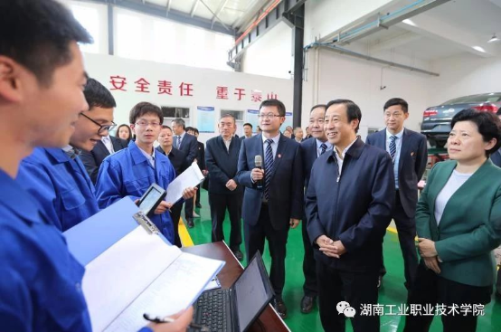 11月14日,湖南省委副书记、省长许达哲来到我校调研。他强调,要深入贯彻习近平总书记关于教育的重要论述,认真落实党中央、国务院关于职业教育改革的决策部署,坚持服务发展、促进就业,坚持深化改革、破解难题,坚持产教融合、校企合作,培养更多技术人才和大国工匠,为实现“五个强省”目标、建设富饶美丽幸福新湖南提供更好的人力人才资源保障。