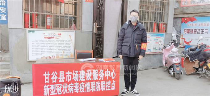 “现在是疫情防控的关键时期,请大家佩戴好口罩,依次进行体温测量与信息登记……”在甘肃省天水市甘谷县冀城大市场,湖南工业职院电气2019-2班学生王德强一边引导大家排队登记,一边发放战疫宣传手册。由于该市场有近500个商户,日常人流量较大,为了减少人员聚集,王德强还配合该市场建设服务中心的党员们一起劝阻商户暂不开门营业。王德强说,“我是一名入党积极分子,我要为战‘疫’出一份力。”