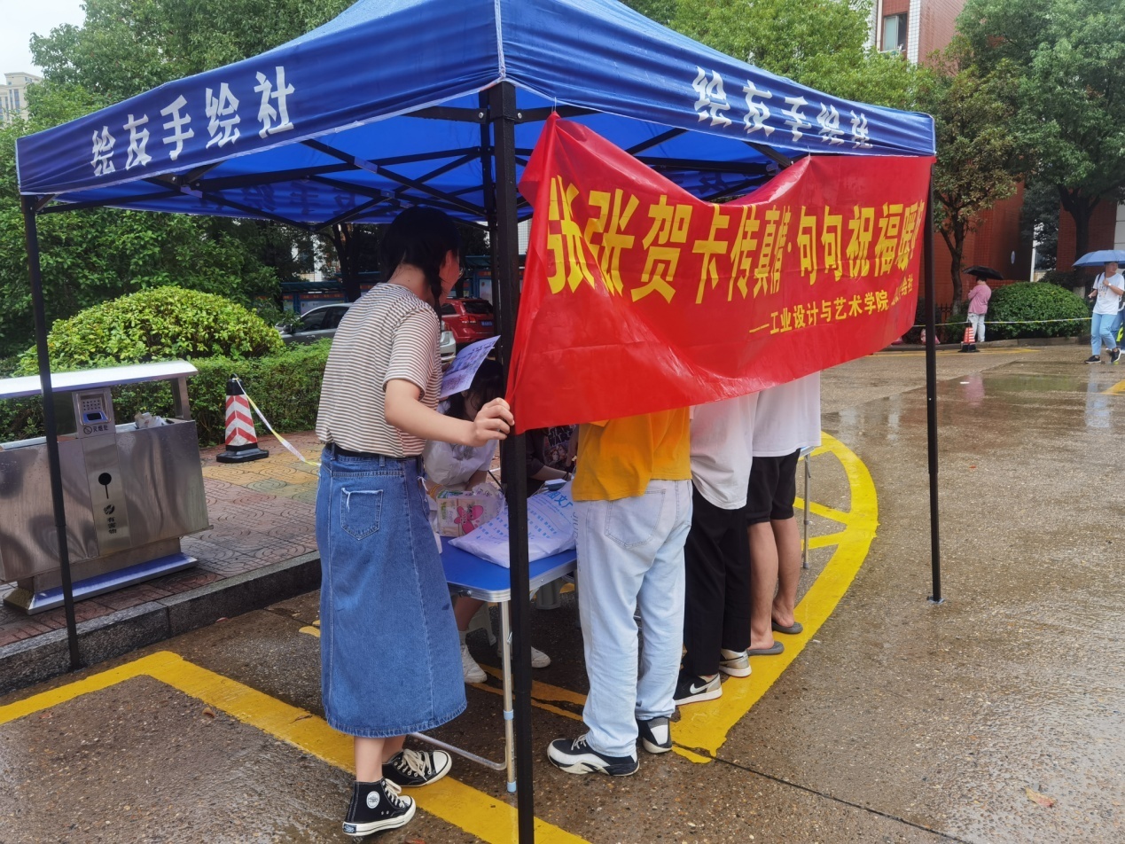 金黄飘飞的落叶,带我们走进了丰收的九月,在这个月里,我们迎来了一个特殊的日子——教师节。为了在全校营造尊师重教的氛围、弘扬尊师重教的良好风尚,2020年9月10日,在第36个教师节来临之际,我院与绘友手绘社联合举办了以“张张贺卡传真情,句句祝福暖师心”为主题的教师节送贺卡活动。在工业设计与艺术学院郑志凌书记、赵芳老师的指导下,我院团学联干部与绘友手绘社成员在学校设立贺卡制作展台,展示并发放学生亲手制作的教师节贺卡,发动全体学生积极参加教师节庆祝活动。
