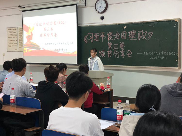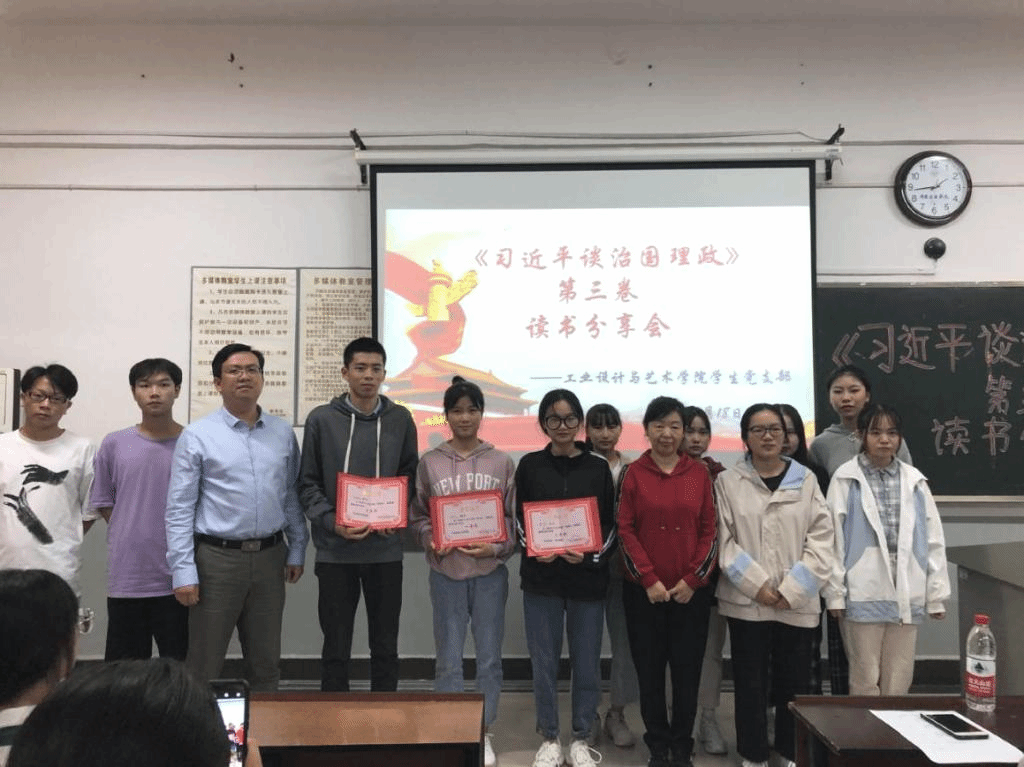 为深入开展面向全院师生的理论宣讲,营造浓厚的学习氛围,9月18日,工业设计与艺术学院党总支学生党支部组织开展《习近平谈治国理政》第三卷读书分享会,学院党总支书记郑志凌、学生党支部书记陈丽萍以及辅导员老师出席并担任本次活动评委,全体学生党员、发展对象、入党积极分子参与本次活动。