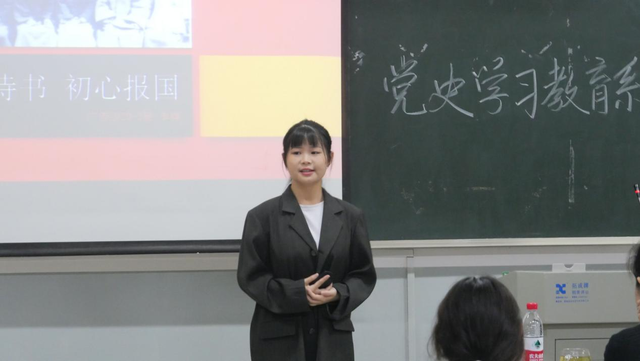 本次大赛自5月9日开展,分为初赛和决赛,经过选手精心的准备和付出,共有八名选手从初赛中脱颖而出。决赛中选手采用PPT微宣讲的模式,结合党史教育对于自身的影响,从多方面、多角度饱含深情的讲述了为革命奋斗终身的国家领导者毛泽东、脱贫攻坚战中从城市走向大山的青年党员黄文秀、服务身边群众十几年的亲民党员前辈夏铁梅等八名优秀中国共产党员事迹。同学们深入挖掘感动自身的优秀党员模范故事,向现场观众传递着他们身上宝贵的奋斗精神。