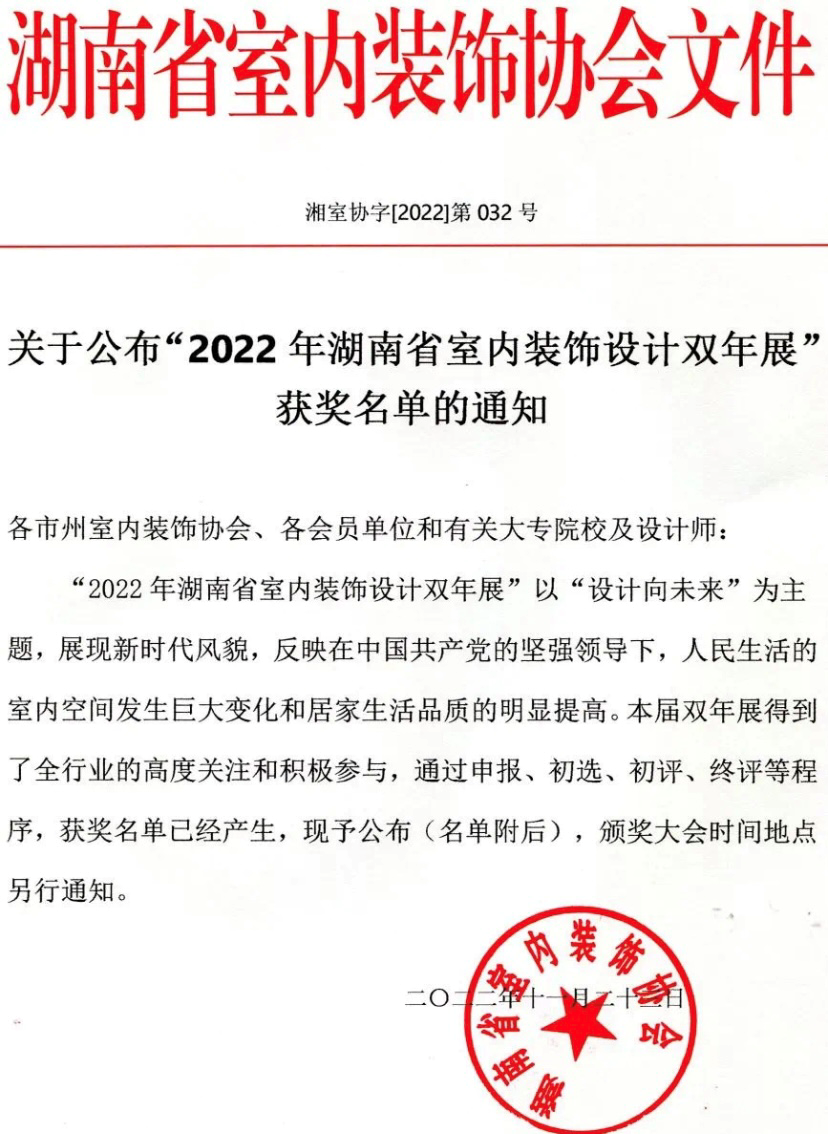 刚刚结束的“2022年湖南省室内装饰设计双年展”比赛圆满落幕,我院师生在比赛中获得优异的成绩。该比赛以“设计向未来”为主题,鼓励设计者充分发挥自身专业技能,重点展现当代人民生活品质的提高,并且为广大室内设计者提供学习竞技发展的平台。我院师生踊跃参与、积极学习、认真比赛,在比赛过程中不断探索、不断提升、不断创新。经过两个月的打磨和润色,他们交出了令人满意的答卷。不仅仅有老师作品获得佳绩(银奖1项),学生们在此次比赛中更是大放异彩,为我校赢得学生组银奖2项,学生组铜奖5项以及学生组优秀奖4项(后附获奖名单)。这充分展示了工业设计与艺术学院的教师力量及学生实力,彰显了我院对艺术素养培育的重视。厉兵秣马强技能,蓄势待发新征程。愿我院室内设计专业的教师学生们能够欲穷千里目,更上一层楼!期待工院学子再创佳绩!一起向未来!