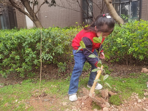 “我浇水,你铲土吧!”“哥哥姐姐们,我来帮忙扶着树干!”在社区,小朋友在学校志愿者的带领下,植树浇水,让社区更“绿”了。