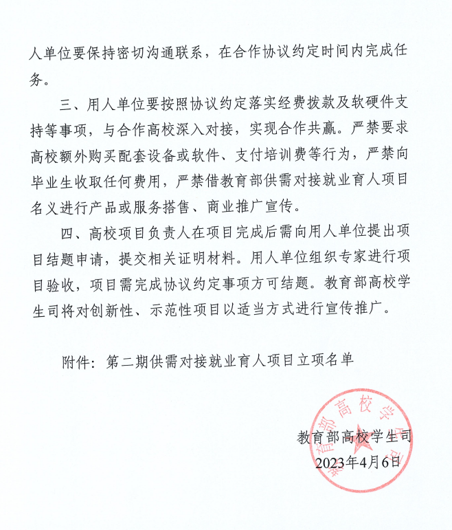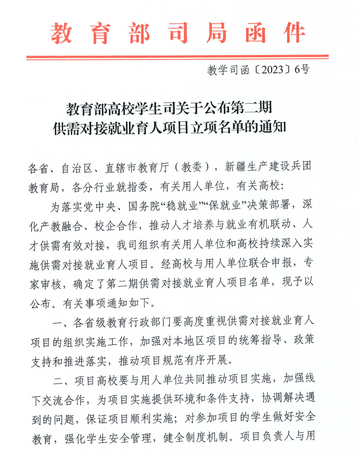 该项目是为落实党中央、国务院“稳就业”“保就业”决策部署,深化产教融合、校企合作,推动人才培养与就业有机联动、人才供需有效对接,教育部高校学生司组织有关用人单位和高校实施供需对接的就业育人项目。