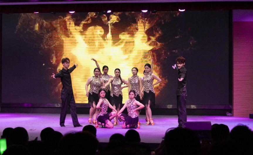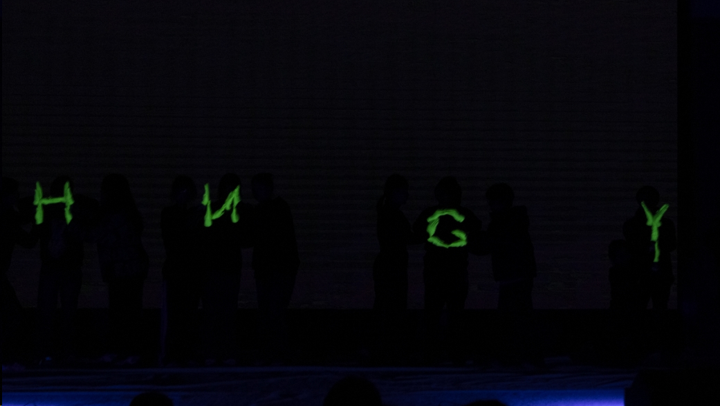 荧光手势舞《夜空中最亮的星》将活动的氛围推向高潮,为本次元旦晚会画上了完美的句号。表演人员用荧光手套摆出“HNGY”几个大字时,观众们情不自禁地发出了欢呼雀跃声。歌词不仅传达了对未来的美好期许,也展现了学院师生团结一心、共创美好未来的坚定信念。
