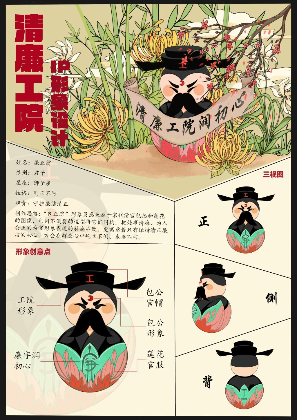 本网讯 “春光作序,万物和鸣。”初春的星城暖阳洒落,新学期如约而至。校园里阵阵“清”风徐来,一个叫做“廉正翁”的IP形象火了。这个头戴工字官帽、身着廉字青衣的“廉正翁”设计者就是我校工业设计与艺术学院的专业教师杜进。党员教师杜进从教十三年来,一直秉承着“立德、敬业、精技、创新”的校训,把课堂育人和实践教学作为自己的首要任务,指导学生获得省级以上奖项30余项,主持行业内设计实践项目40多项,多次荣获省级“优秀指导教师”奖。