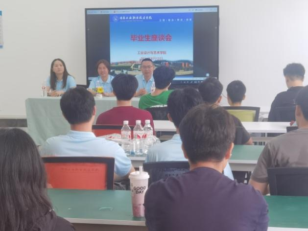 本网讯 6月12日上午,工业设计与艺术学院在匠心楼103召开“共话成长,筑梦远航”为主题的毕业生代表座谈会。学院党总支书记苏茂芳、院长宁朝阳,党总支副书记杨甜出席会议与毕业生代表共抒情谊,共话成长,并现场回应毕业生提出的建议。