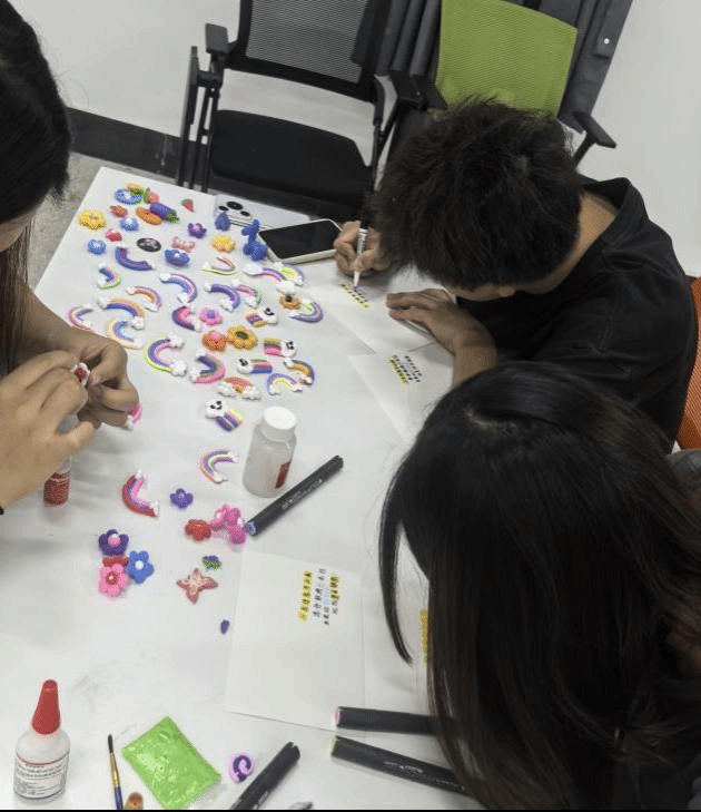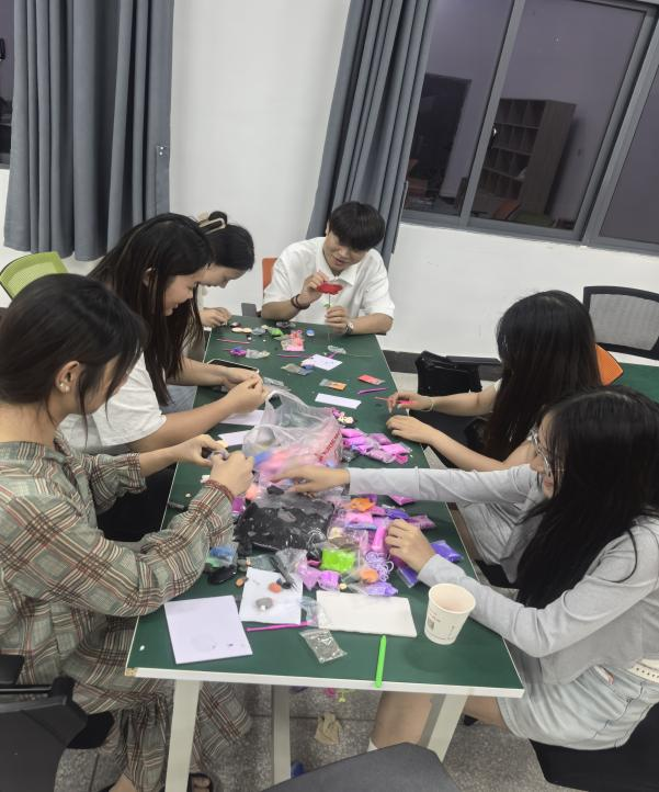 同学们发挥创意想象,把对老师的敬意和感恩之情融入形象设计,再通过手工制作完成粘土作品。“马老师平时工作严谨,在生活中对我也很关心,我给他捏了一件鲜黄色的衣服,用彩虹与太阳搭配,因为我希望他的生活充满阳光与快乐。”包装2023-1班袁月泉说。每位同学通过揉、捏、搓、切、压、粘等方法,塑造出一件件生动形象的彩泥作品,大家围坐在一起相互交流、共同创作,整个过程充满了欢声笑语。