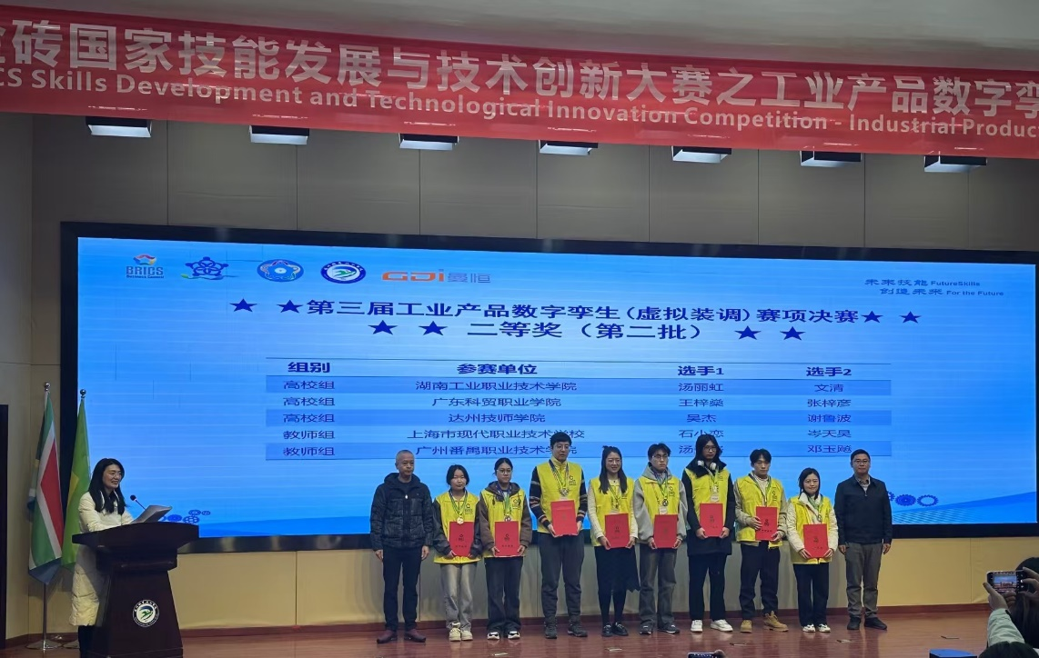 2024年12月20日,2024“一带一路”暨金砖国家技能发展与技术创新大赛之第三届工业产品数字孪生(虚拟装调)赛项决赛在达州职业技术学院圆满收官。来自全国11个省(市)46支队伍共92名选手展开了激烈的竞争。工业设计与艺术学院师生在比赛中获得1项二等奖、1项三等奖、优秀指导教师奖,以及优秀组织奖的好成绩。