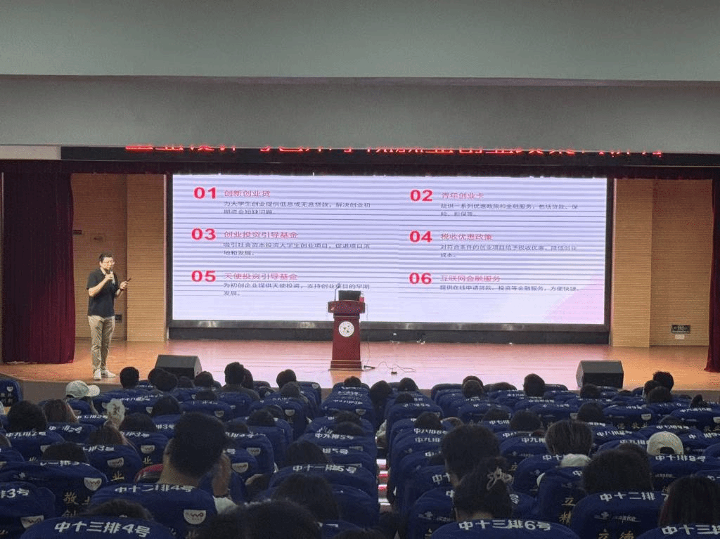 宣讲会上,主讲人王潇围绕大学生创业的核心扶持政策,详细解读了创业补贴、税收优惠、金融支持等关键内容,帮助同学们系统掌握各项政策措施,增强学生对创新创业环境的认识和应对能力。同时,重点介绍了“金种子杯”大学生创业大赛的赛制规则、参赛条件及奖励政策,鼓励广大同学积极参与赛事,锤炼创业本领,争取在实践中实现自我提升。