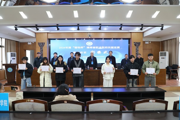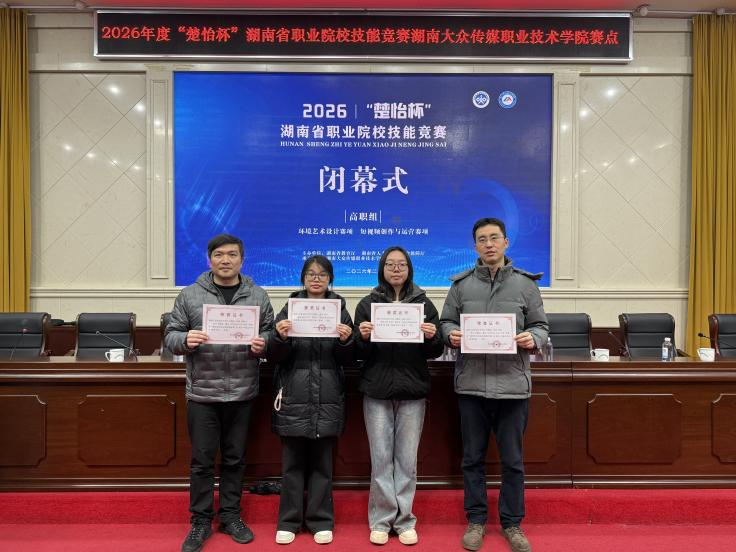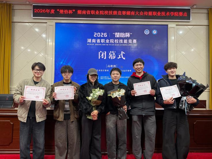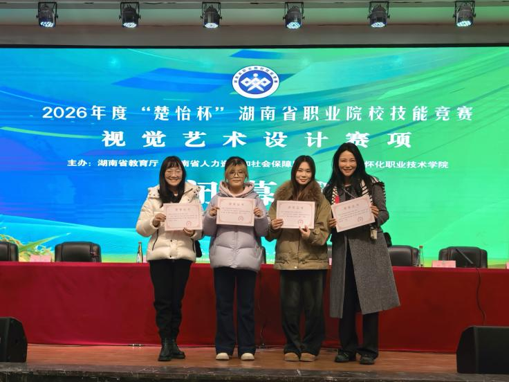 在2026年度“楚怡杯”湖南省职业院校技能竞赛中,学院学子表现出色,凭借扎实的专业功底和出色的艺术创造力,从众多参赛选手中脱颖而出,共揽获一等奖4项、二等奖4项、三等奖2项,在视觉艺术设计、数字艺术设计、短视频创作与运营、环境艺术设计等多个赛道上全面开花,不仅延续了传统强项的优势,更在新兴赛项中实现了突破,充分体现了学院紧跟数字创意产业升级,深化“以赛促教、以赛促学”教学改革的成效。