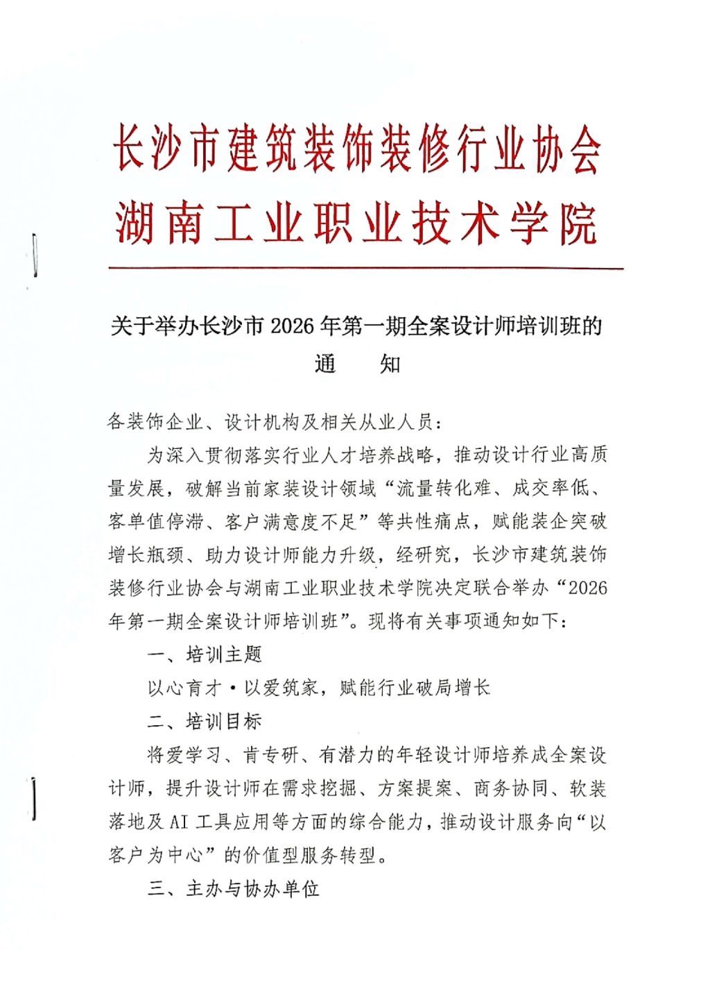 为深入贯彻落实行业人才培养战略,推动设计行业高质量发展,破解当前家装设计领域“流量转化难、成交率低、客单值停滞、客户满意度不足”等共性痛点,赋能装企突破增长瓶颈、助力设计师能力升级,经研究,长沙市建筑装饰装修行业协会与电子pg游戏平台下载决定联合举办“2026年第一期全案设计师培训班”。具体见文件。