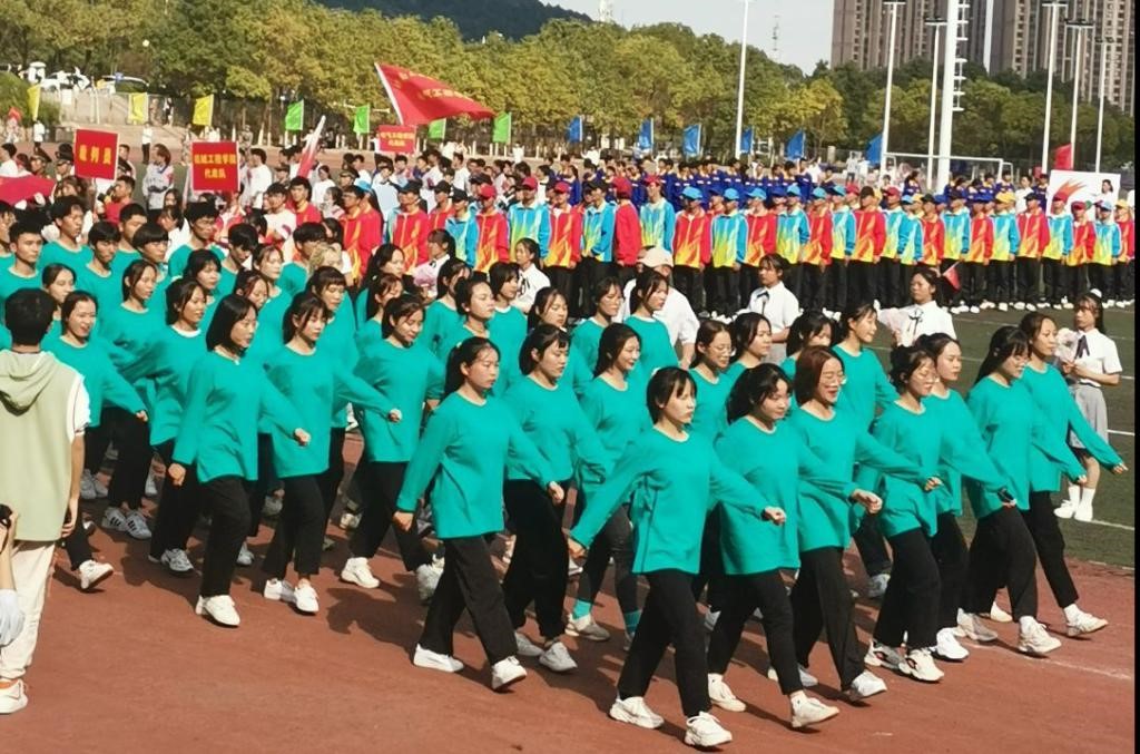 田径场内人头攒动、彩旗飘扬,伴随着振奋人心的《运动员进行曲》,我院方阵队迈着整齐的步伐,喊着响亮的口号经过主席台接受学校领导检阅。