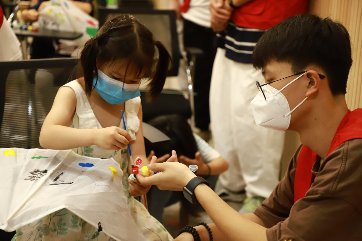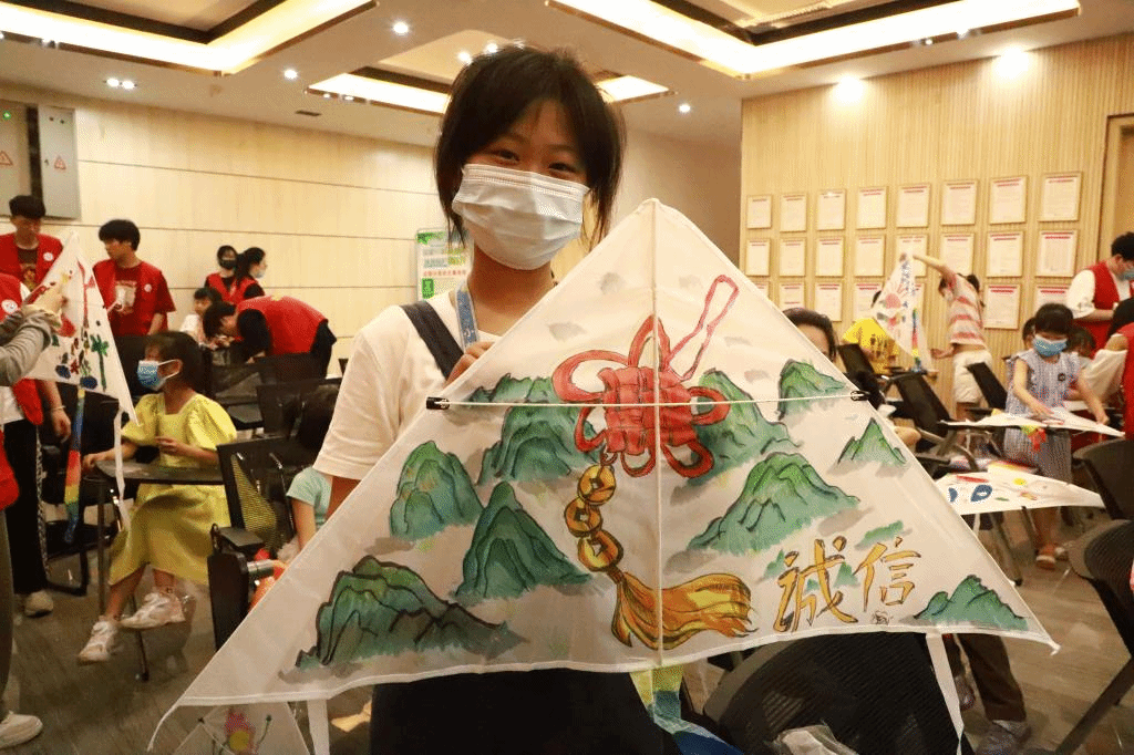 在“大手牵小手,小手拉大手”共同努力下,每个小朋友都拥有了自己的手工风筝。“手工绘制过程中,我与小朋友配合十分默契,相处也很愉快,既感受到了中国民间传统文化的魅力,也提高了动手能力与创造力,是一次非常有意义的社会实践活动”志愿者刘婕说道。