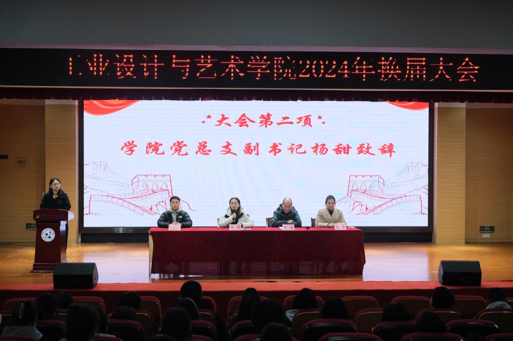 杨甜代表学院党总支致辞,她向即将离任的学生干部们表示衷心的感谢,对即将上任的新一届学生干部们提出了希望和要求。她指出,作为学院的主要学生干部,一要强化思想政治引领,做好青年先锋表率;二要加强团结协作,为学院争光添彩;三要坚持以身作则,做遵规守纪的好学生。希望新一届团学干部们能继承和发扬优良传统,不断开拓创新,为工业设计与艺术学院的发展贡献自己的青春力量。