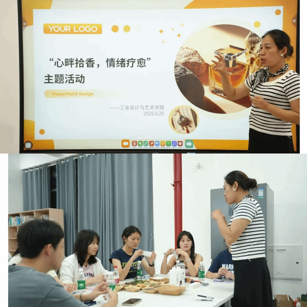 为提升大学生情绪管理能力,充分发挥美育润心、劳育励心的作用,2025年5月20日,工业设计与艺术学院在匠心楼团体辅导室开展“心畔拾香,情绪疗愈”香氛手作活动。