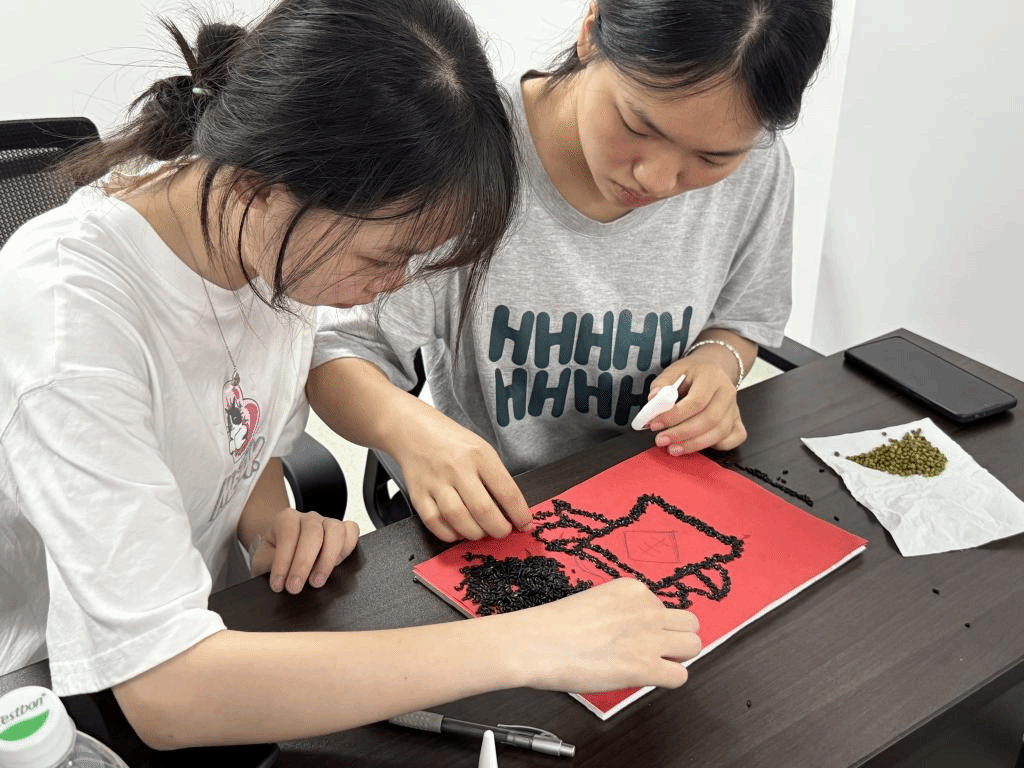 他们或独立构思,或小组协作,用红豆勾勒相思、以绿豆点缀生机、以黑豆增添层次、以黄豆渲染色彩,精心创作出《我的祖国》《吉祥五谷画》等10余幅五谷拼贴画。这些作品不仅构图生动、充满创意,同时也充分体现了学生对大自然的热爱及对生活的感悟。