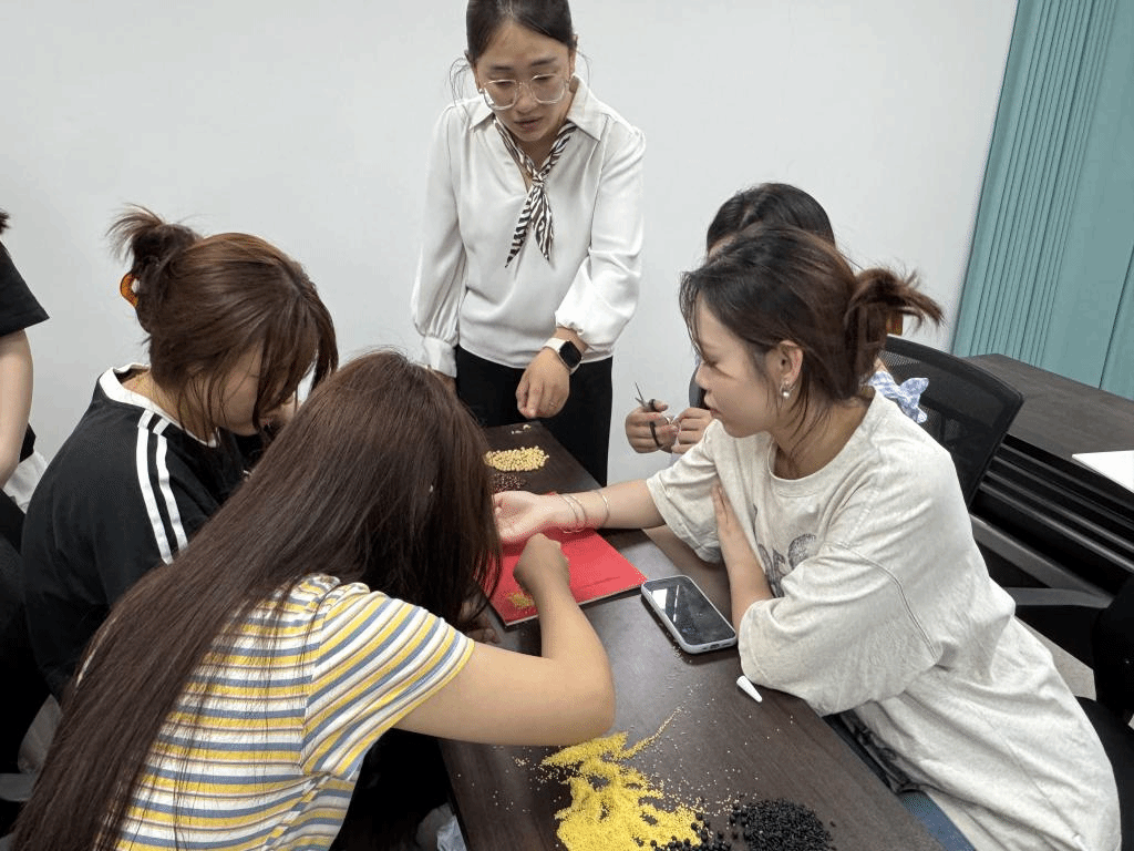 工业设计与艺术学院党总支副书记杨甜表示,“创作无需精湛技艺,只需一颗热爱生活的心。今天师生一同感受‘指尖上的劳动教育’,以粮食为“颜料”,以匠心为“画笔”,既是传统文化的美好延续,也是师生创意的生动表达。”