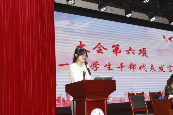 会上,2024-2025届学生干部代表李月月同学作总结发言。她深情回顾了任职期间的工作历程,分享在活动组织、学风建设等方面取得的成长与收获。随后,新任学生干部代表仇怡鑫同学作表态发言,郑重承诺将恪尽职守、勇于担当,展现了新一届学生干部的责任感与使命感。