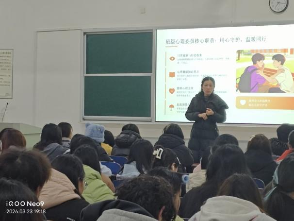 为进一步筑牢班级与寝室心理健康防线,强化心理委员、寝室信息员及朋辈领航员的责任意识,提升其心理危机识别、沟通疏导与帮扶救助能力,切实守护全院学生身心健康成长,2026年3月23日,工业设计与艺术学院举办“心向阳光·共护成长”心理危机识别与安全知识专题讲座,全院各班心理委员、各寝室信息员及朋辈领航员参加。