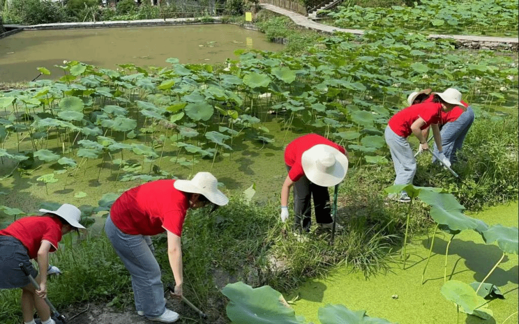 在暑期实践活动期间,该实践队员来到中央红色美丽村庄试点村——茨岩塘湘鄂川黔革命根据地进行参观学习,并在学校头车村乡村振兴工作队驻村第一书记刘铮的带领下,在头车村大字沟古寨荷花池参加拔草等劳动实践。