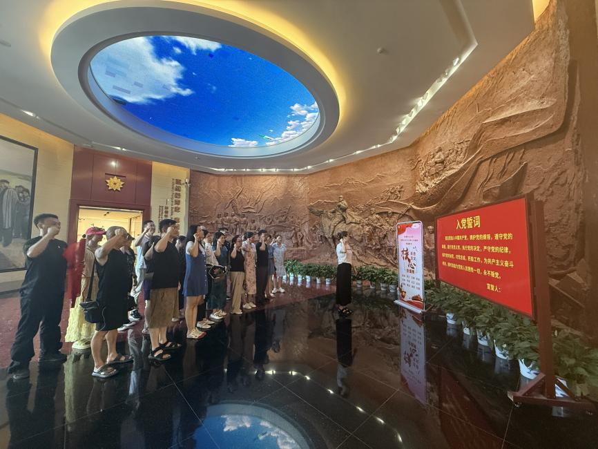 全体党员在学院党总支副书记杨甜的带领下重温了入党誓词。参观之余,杨甜还为现场党员讲授了一堂微党课,她指出:“新时代的教育者,应从红色文化中汲取力量,使红色基因薪火相传,不断长志气、硬骨气、蓄底气,不辱使命,不负人民。”