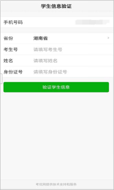 考生填写自己的考生号、姓名、身份证号信息,系统验证考生信息是否正确,是否报考我校。