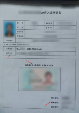 第一步:下载《放弃就读承诺书》到手机,打印好按下载模板填写后拍照;