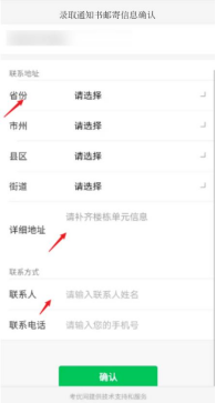 请认真核对报名所留地址及电话,按要求选择相应省市县街道,并填写详细地址和联系人及联系电话,确认后则完成所有操作。
