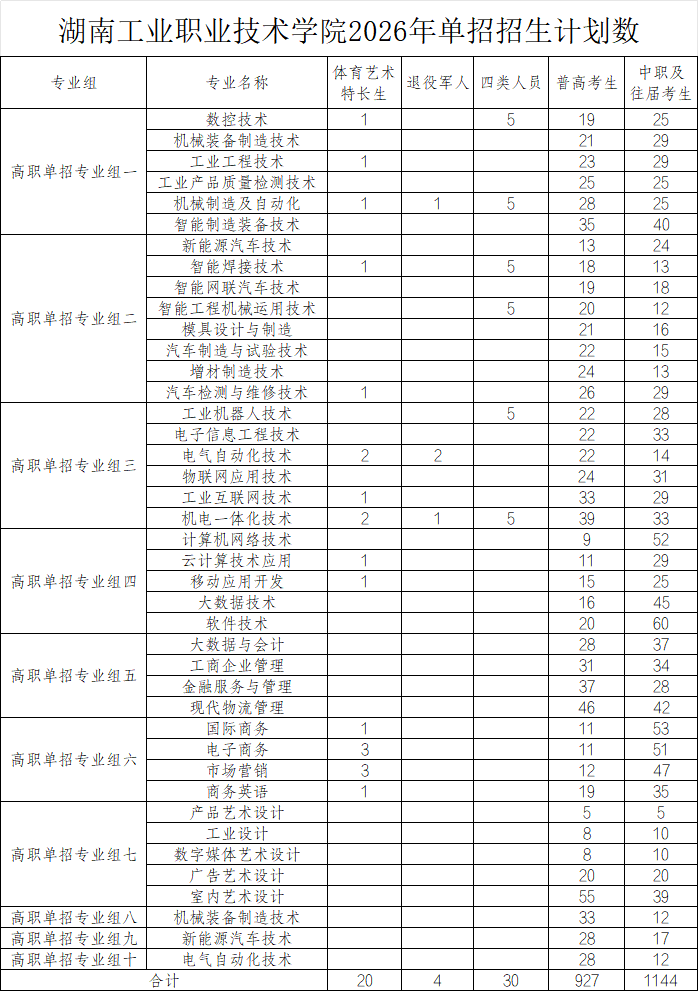 根据参加我校2026年单独招生考试的各类型考生人数情况,按照学校2026年单独招生章程中相关要求,经省教育考试院审核通过,现将我校各专业2026年单独招生各类型考生招生计划数公布如下: