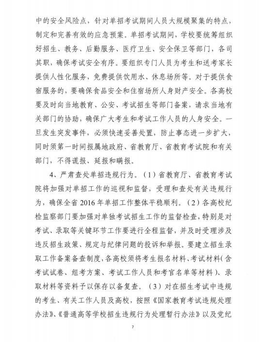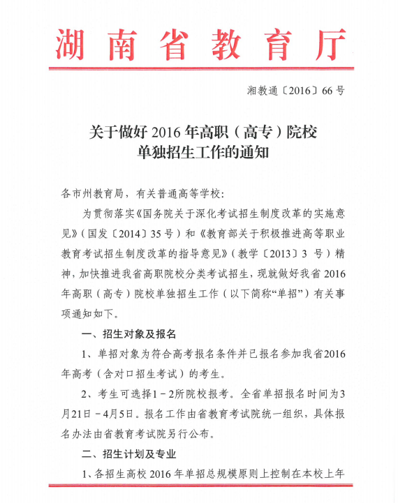 关于做好2016年高职(高专)院校单独招生工作的通知