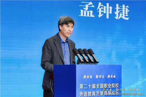 孟钟捷在致辞中表示,在职教出海、企业出海迈向提质升级新阶段的大背景下,职业教育在推动企业出海、培养高素质技能人才等方面具有重要战略作用。职业院校外语教育需以“跨界联动、人文底蕴、技术生态”破局,推动“语言+专业”深度融合、“语言+文化”高度共振、“语言+数字”高效协同,形成一条与社会精准对接、与时代高度契合的外语教育发展路径,为企业高质量出海提供人才支撑。