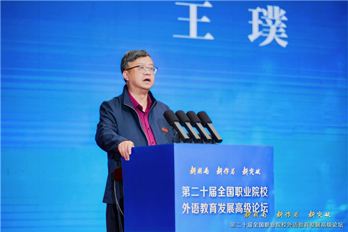 王璞介绍了学校外语教育教学改革、产教融合与国际化办学的特色发展之路:深耕“外语+产业”融合培养,开发了“职场通用—职业提升—国际输出”三阶递进课程体系,打造了国家级精品课程与规划教材,累计培养3800余名派驻海外的“国际工匠”,海外岗位适应周期大幅缩短。他表示,学校将以本次论坛为契机,深化AI赋能教学改革、推进教学关键要素改革、深化产教融合,构建高技能人才培养新生态。