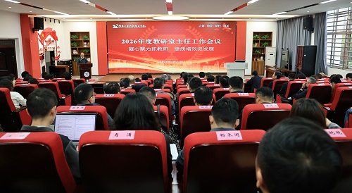 本网讯 4月21日下午,学校2026年度教研室主任工作会议在尚善楼1101会议室召开,学校党委书记王璞,党委副书记、校长吴亮红,党委副书记成涛,副校长谢希钢、侯新华、李强,相关职能部门负责人、各二级学院(部)党政主要负责人、全体教研室主任及教学质量奖获奖教师代表参会,会议由李强主持。